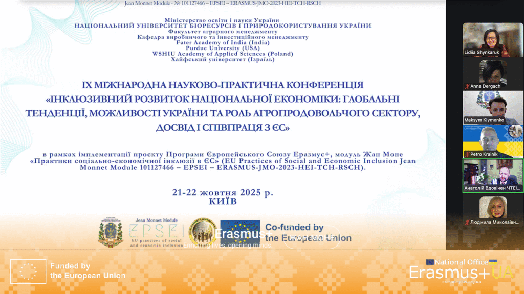 IХ Міжнародна науково-практична конференція «Інклюзивний розвиток національної економіки: глобальні тенденції, можливості України та роль агропродовольчого сектору, досвід і співпраця з ЄС» в межах проєкту Еразмус+ (21-22.10.2025, онлайн)
