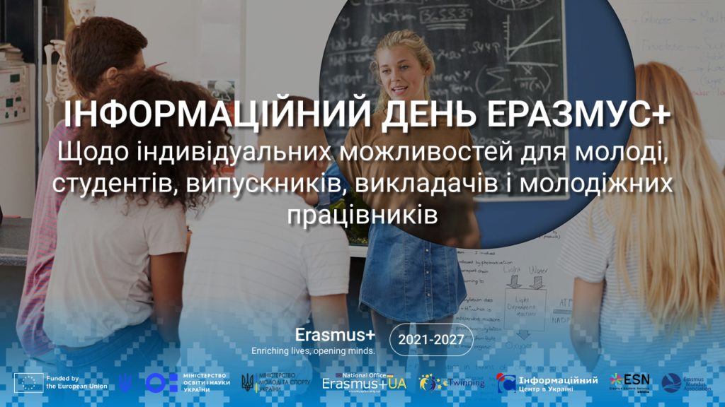 ІНФОРМАЦІЙНИЙ ДЕНЬ ЕРАЗМУС+ щодо індивідуальних можливостей для молоді, студентів, випускників, викладачів і молодіжних працівників (9.12.2025 р., онлайн)
